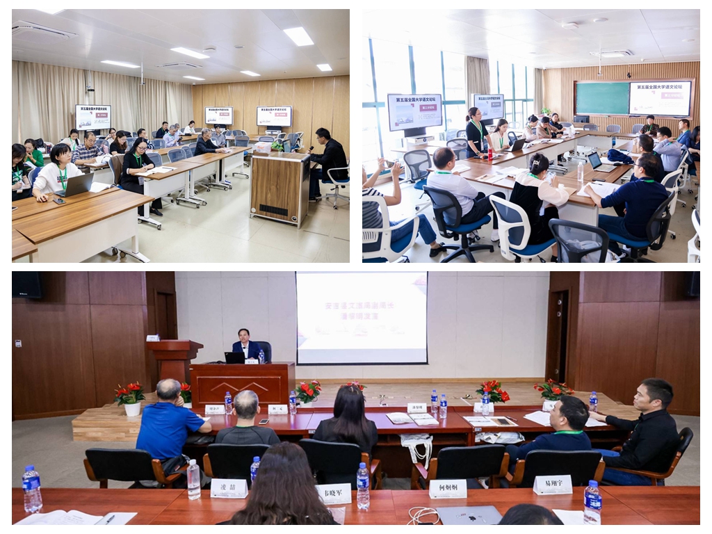 北京大学漆永祥教授、西南大学董小玉教授、中山大学王威廉副教授、中南财经政法大学程韬光教授、浙江师范大学高玉教授、杭州师范大学何二元副教授、湖北大学杨建波教授、喀什大学周金声教授分别以“北京大学开设大学语文课程的历史与现状”“大学语文与课程思政”“新时代大学写作教育的转向”“大学语文教育的现代化研究”“语文教育开展”“大学语文逻辑起点”“新文科和大学语文”“大学语文教材建设”等主题分别作报告发言,我校叶晗研究员做题为《大学语文30年:浙江科技学院的探索与实践》的主题发言,与会代表们展开讨论,各抒己见,使多维度的观点在论坛碰撞出智慧的火花。我校凌喆副教授论文《“基于汉语言文化”的“大学语文”课程教学改革》入选会议论文集,李正爱副教授参加分论坛汇报、易翔宇博士参加课程分享。