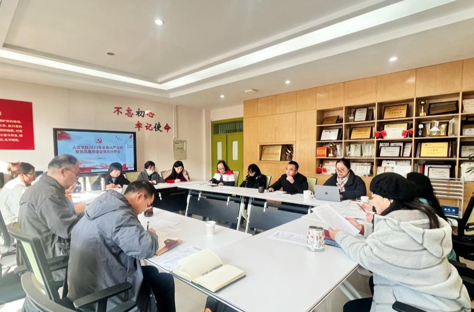 2024年1月17日,人文学院2023年全面从严治党分析会暨党风廉政建设情况分析会在闻理园A4-407会议室召开,学院党政领导班子成员、学院系(部)中心负责人及相关内设机构负责人等相关人员参加会议,校纪检监察室工作人员督查指导,会议由学院党委书记邵莉敏主持。