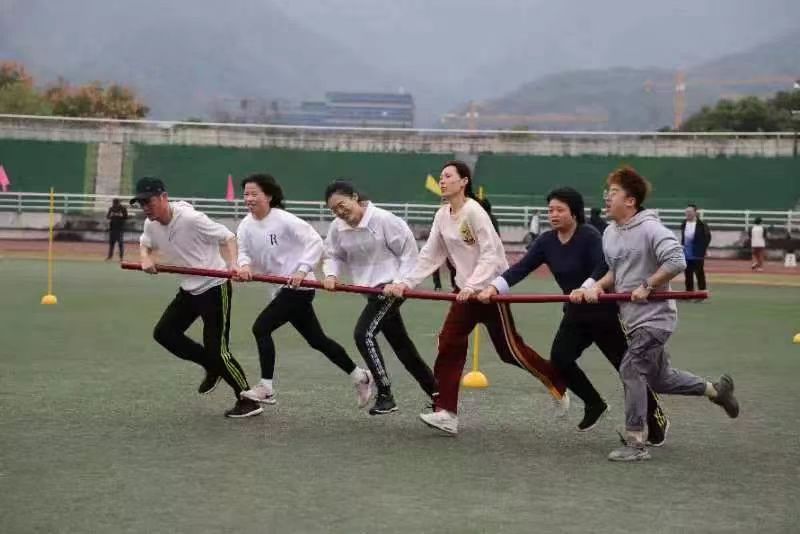 数人合力拿起棍子飞奔,拼的是团队的合作,拼的是队友的默契,拼的是昂扬的决心。