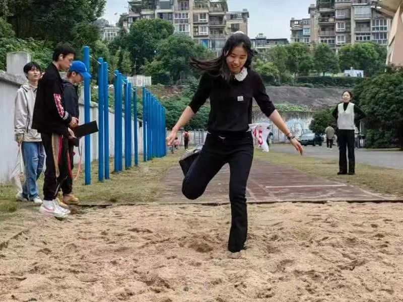 你迈开矫健的步伐跃向沙坑,用力量和速度向我们展示了你对自己一次次的突破。