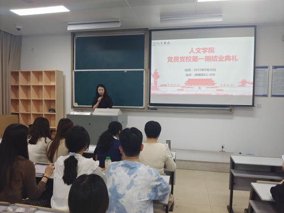 近日,人文学院党员党校第一期结业典礼在闻理园A1-106顺利召开。典礼由人文学院兼职组织员翟士超老师主持,学院党委书记邵莉敏老师、学院研究生办公室主任金素芳老师以及各学生支部党员出席。