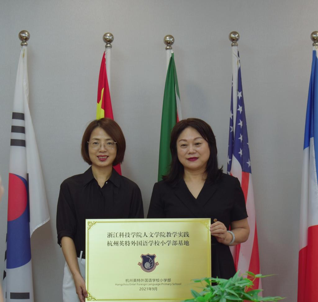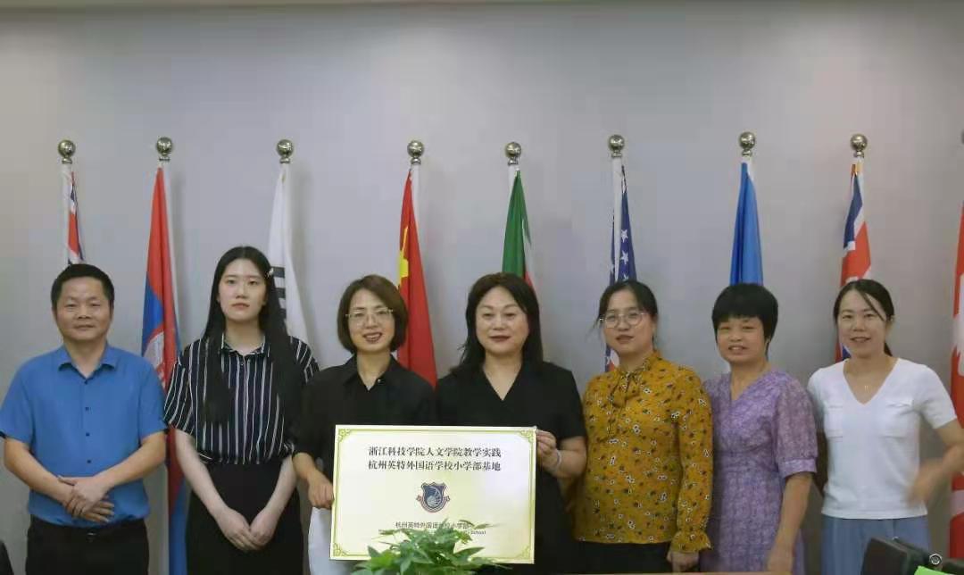 2021年9月15日下午,我院与杭州英特外国语学校小学部成功举行了签约授牌仪式,共建教学实践基地。出席本次会议的嘉宾有浙江科技学院人文学院院长叶晗、副院长凌喆、研究生教务办主任金素芳、本科生教务办教学秘书朱祷青、杭州英特外国语学校小学部校长朗明仙、研修项目负责人龚农兵、校办秘书张茹钰。