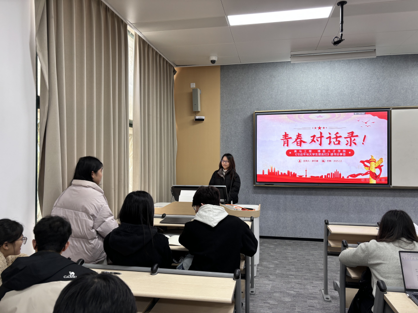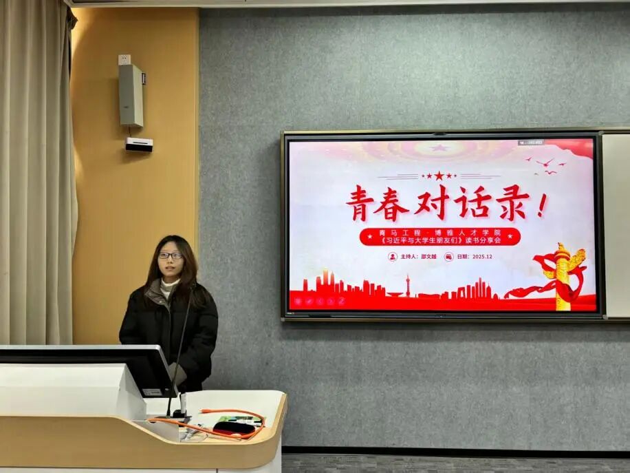 为深入学习《习近平与大学生朋友们》的核心要义,以“树立远大理想·对话时代信仰”为核心主题,引导青年马克思主义者筑牢理想信念根基,将个人成长与国家发展同频共振,12月16日下午,人文与外国语学院青马工程·博雅人才学院《习近平与大学生朋友们》读书分享会于闻理园A1-102教室顺利开展。本次活动以“从《习近平与大学生朋友们》中感悟理想力量”为主题,博雅人才学院全体学员参与,在理论学习、思想碰撞与互动交流中,明确新时代青年的使命与担当。