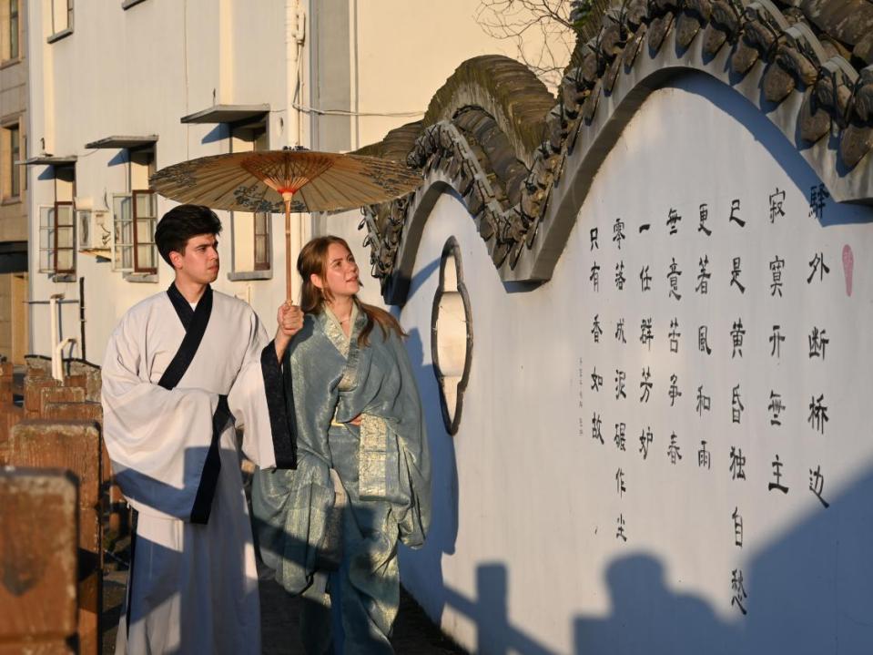中外实践团成员还沿着浦阳江,找寻民居古墙古诗词文化中蕴含的清廉知识,记录下了新坝村的自然风光、村容村貌、居民的生活场景和新坝村的清廉建设成果以及乡村振兴共富的风貌。