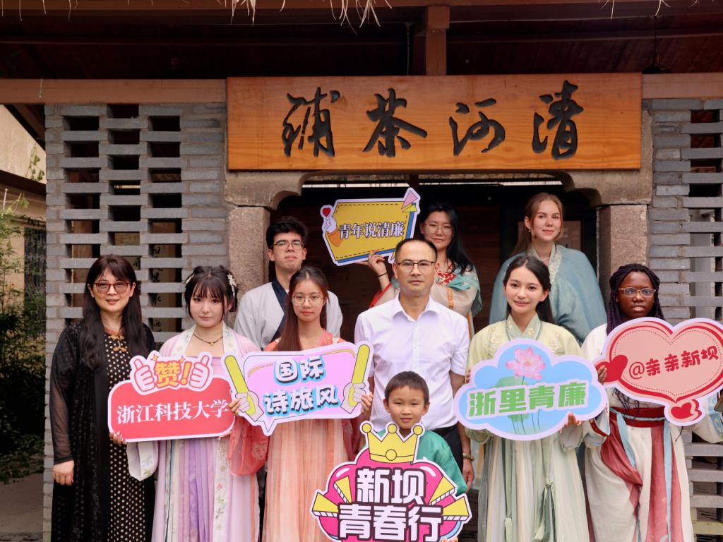 7月3日,人文学院“浙里青廉·青年说廉”中外暑期社会实践团在中文系主任程永艳老师的带领下,来到“清廉村居”建设示范村——杭州市萧山区义桥镇新坝村开展实践活动。此次活动旨在深入了解新坝村在廉洁建设方面取得的成就,挖掘诗词中的廉洁文化,依托实践团的中外特色,通过各种新媒体平台开展廉洁文化的国际传播。