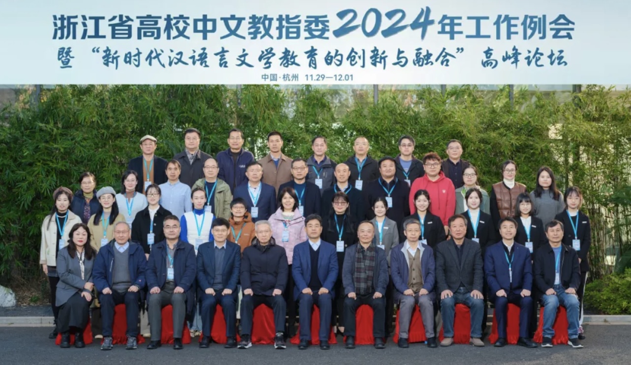11月29日至12月1日,由我院承办的浙江省高校中文教指委2024年工作例会暨“新时代汉语言文学教育的创新与融合”高峰论坛在杭州成功举办。来自北京大学、清华大学、中山大学、苏州大学、扬州大学、浙江大学、浙江工业大学等20多所高校的多位长江学者和近20位浙江省高校中文教指委委员,以及我院20余位师生参会。我校党委副书记单胜道教授致欢迎辞,叶晗院长向与会与会嘉宾介绍了我院汉言文学省一流专业建设情况。