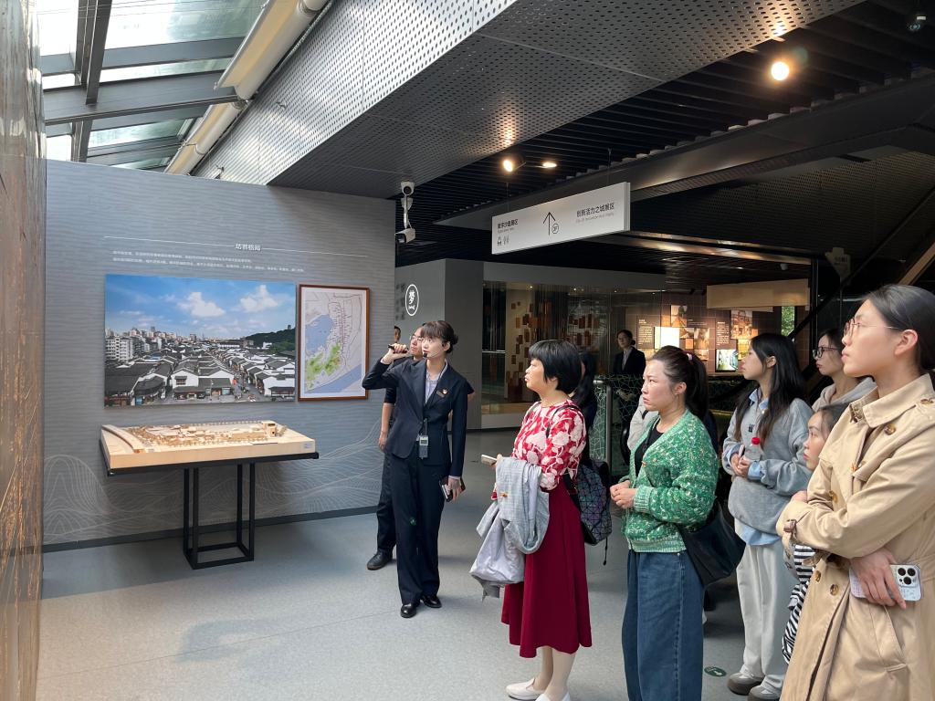 踏入了杭州城市规划展览馆,一楼“勇立潮头,逐梦一流”展区,用生动的讲解、精彩的视频,向我们展示了杭州在“八八战略”指引下作出的实践努力和取得的丰硕成果。“文化之城,品质杭州”展区追溯了山水杭州的文化、生命之源,连接历史文化古城的过去与未来,展现了杭州山水文化的美学气质。在讲解人员的介绍下,我们也了解到历代名人治理杭州时所展现的卓越智慧,现在杭城依稀可见当时遗迹如西湖“白堤”“苏堤”,钱塘江堤坝、京杭大运河等。