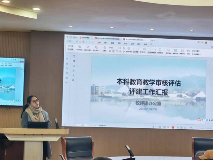 凌喆副院长介绍当前审核评估评建工作前期进展情况,并传达了学校关于本科教学工作的最新指示精神,指出评估的指导思想主要可以概括为:一个根本任务,两个确保,三发展,四促进,五质量文化。同时她还将新一轮的审核评估与上一轮的审核评估进行对比,相比以往的教学评估增加了教育两个字,推出强化学生中心、产出导向和持续改进的OBE机制,其根本在于教育评价中要切实落实习近平总书记关于教育的系列重要论述,以正确的指挥棒引导教育高质量发展,学校及其学院都要把握好这一核心要义。
