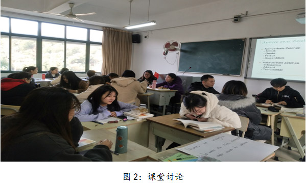 在摸索前行中,响应教学手段变革的时代要求,结合自己的学习、教学经历,我采取了“互联网+教学”的方式。最初采用的网上资源是中国高校外语慕课平台(UMOOCs)的《德语语言学导论》。具体实施时,将理论部分前置,充分利用学生的课余时间,通过在线慕课学习和了解相关理论。课堂上以学生为采取启发式、研讨式、小组活动式等开放型教学活动方式,调动学生的学习积极性,实现课程目标。