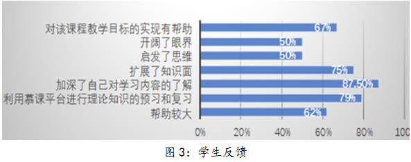实践表明,该方式契合互联网时代青年学生的学习、认知习惯,契合该课程的课程特点和教学目标,为该课堂教学注入全新因素,使课内课外学习相得益彰,互为促进。