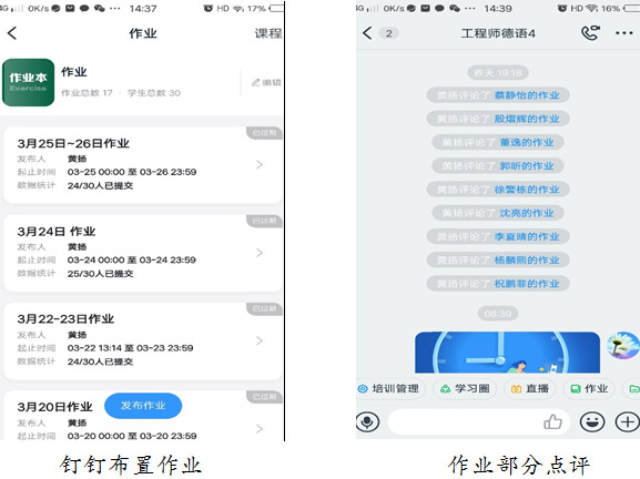 (2)由于该课程大部分时间通过钉钉直播,因此教师可利用钉钉连麦或者教师随时提问,学生在面板内回答,使学生一直保持高度的注意力。
