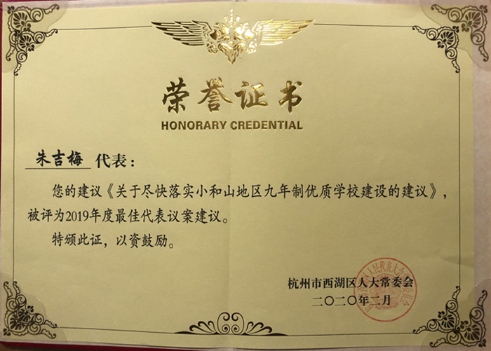 会上表彰了西湖区第十五届人民代表大会第三次会议以来的议案建议,我院院长、西湖区人大代表朱吉梅提交的“关于尽快落实小和山地区九年制优质学校建设”的建议被评为2019年度“最佳代表议案建议”。会上朱吉梅接受了西湖区传媒中心记者的采访,再次反映了小和山高教园区居民对于九年制优质学校的急切期盼。