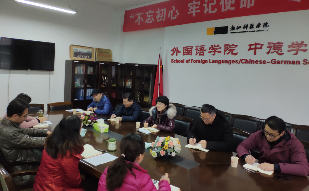 院长朱吉梅从师资建设、教学科研、国际化特色及校区分布等四个方面介绍了我院的基本发展情况。书记汤力峰汇报了中德联合培养本科生项目(“2+3”项目)及我院在自主创收过程中遇到的困难。同时结合学校行政、后勤工作提出了意见与诉求,班子成员结合自己的分工做了补充汇报。