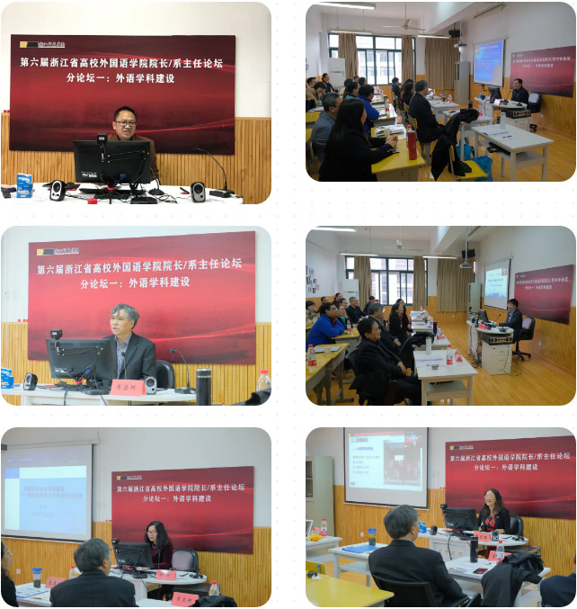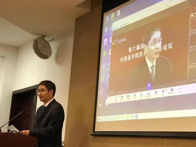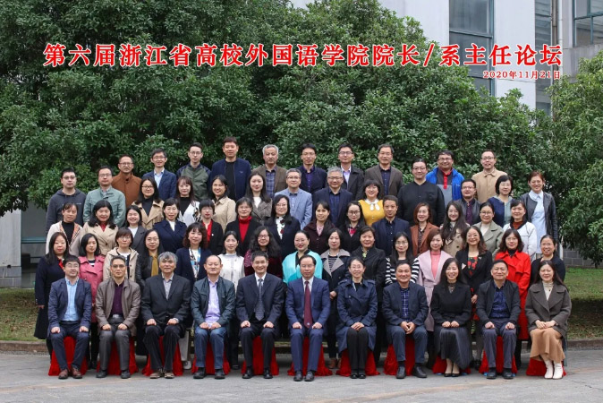 11月21日,“第六届浙江省高校外国语学院院长/系主任论坛”在杭州市小和山高教园区浙江科技学院闻理园隆重举行。浙江大学中华译学馆馆长许钧教授,华南农业大学外国语学院院长黄国文教授,上海外国语大学副校长查明建教授,上海师范大学外国文学研究中心主任朱振武教授,浙江外国语学院校长洪岗教授与副校长柴改英教授,以及来自省内外三十多所高等院校的外语学院院长、系主任与专业负责人齐聚西溪湿地源流之一的西蜜湖畔,小和山麓,共商新文科、新工科、大外语背景下高校外语学科发展战略。论坛由浙江省外文学会发起,浙江科技学院外国语学院/中德学院承办,上海外语教育出版社、杭州新琦迹英语协办。本届论坛采取了线上和线下结合的形式。