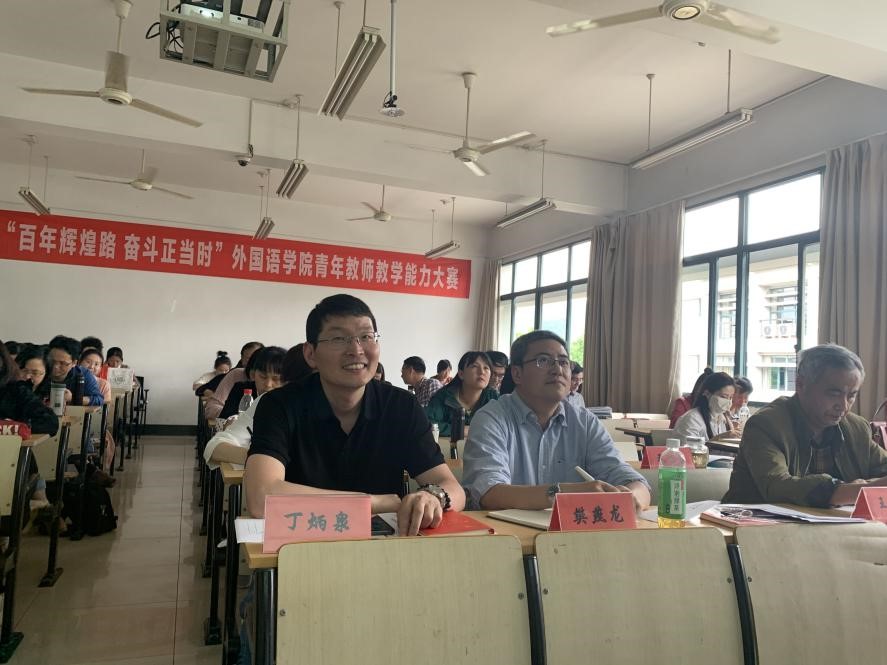 为培养我院青年教师爱岗敬业、严谨治学的态度,进一步激发青年教师更新教育理念和掌握现代教学方法的热情,练就扎实的教学基本功,提高教育教学水平,提升创新意识,加强教学设计能力,努力打造一支师德高尚、业务精湛、充满活力的专业化教师队伍,我院以青年教师教学基本功和能力训练为着力点,充分发挥教学竞赛在提高教师队伍素质中的引领示范作用,促进青年教师之间的教学技能和教学经验交流,于5月21日下午在A3-211教室举办了“百年辉煌路 奋斗正当时”外国语学院青年教师教学能力大赛暨第十二届青年教师教学技能竞赛外国语学院选拔赛。竞赛活动由副院长王旭莲主持,院长樊燕龙、党总支书记丁炳泉、教学督导组组长王金生、分工会主席陈亚轩、英语系主任方小卿、大学英语部主任甘晔等老师担任评委。