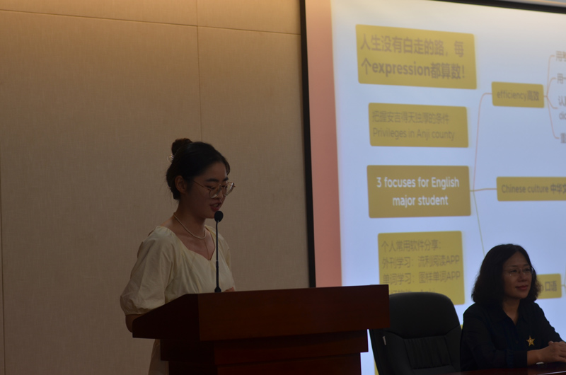 英语181班的学姐吴肖睿与同学们分享了自己的在校生活,为大家送来了学习英语的“干货”,并鼓励大家在新学期每一寸光阴里,让生命充实而舒展、快乐而精彩。