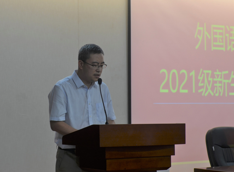 2021年9月5日上午,外国语学院2021级新生开学典礼在安吉校区图书馆四楼报告厅举行。学院党政班子、英语系主任、新生班主任、校友代表、在校生代表等出席典礼,在新征程的起点,展望未来,为外国语学院学子们送去热忱的欢迎和宝贵的经验。会议由党总支书记丁炳泉主持。