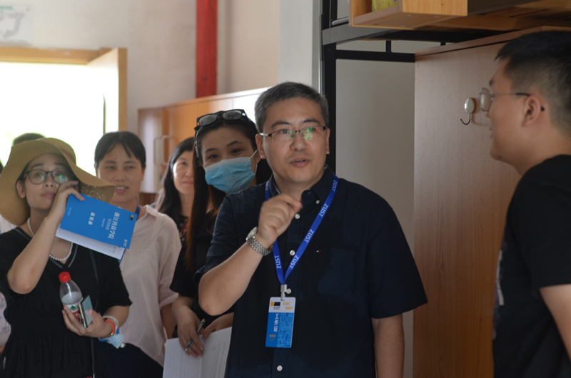 在走访新生寝室期间,领导和老师们与新生展开亲切的交谈,了解他们的生活情况,希望他们尽快适应大学生、努力学习。