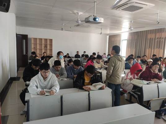 为严格把关精品在线开放课程建设项目验收,同时进一步提升课堂教学质量,积极倡导创新型教学,充分发挥优秀教师在教学中的引领示范作用,近日我院组织院教学督导组通过督导听课、材料审核等方式对王金生、祝敏、吕锴三位老师主持的精品在线开放课程建设项目进行了结题验收,同时为广大教师提供一个互相学习、共同提高的平台,配合校教师发展中心的教学观摩周活动,组织了面向全院的课堂教学观摩活动。学院教学督导组、全体外语教师观摩了分别于11月15日和11月16日由王金生老师主讲的《高级英语》、吕锴老师主讲的《工程师英语2》和祝敏老师主讲的《英语语言学》等三堂示范课。全院各系部,包括新进教师、院督导组、系部主任等四十多余人次的教师参加了本次教学观摩活动。