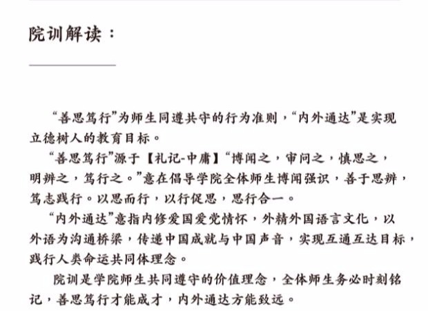 院徽和院训作为学院文化的载体,承载着外语学院的方向和使命、职责与担当,经过外国语学院师生的反复甄选和校内外专家的多轮反馈,最终定稿。启动仪式上,樊燕龙院长详细介绍了院训“善思笃信,内外通达”和院徽的内涵与意义,强调外院师生要砥砺志向,志存高远,成为心怀祖国、面向世界、学贯中外的国际化人才。