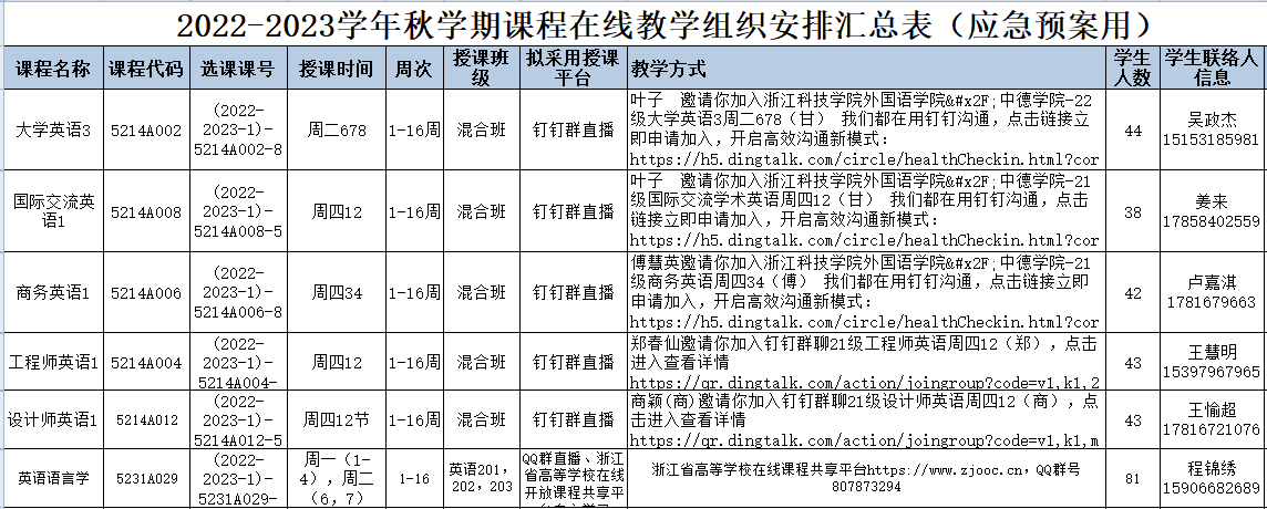 在学校的统筹安排下,外国语学院在学期初即按照学校疫情防控期间教学管理工作的要求,认真制定了线上教学应急工作方案,做好线上教学全真演练,并随疫情波动实施动态调整。各系部和基层教学组织挖掘线上教学优秀案例,凝练可推广、可复制的教学经验,开展线上教学经验分享与交流,邀请线上教学经验丰富的教师分享在线教学的经验,促进教师线上教学质量的提高