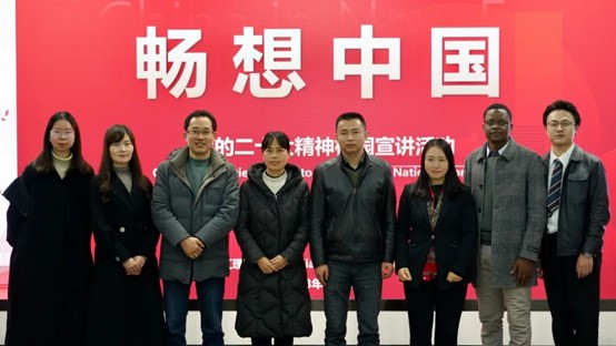 2月10日下午,响应省教育厅关于在国际学生中宣讲党的二十大精神的号召,在两校国教学院的精心组织下,由我院党总支副书记方小卿副教授、学生宣讲员周晓惠(英语专业201班)和津巴布韦籍留学生Tungamirai Eric Mupona(中文名:米莱)组成的浙江科技学院宣讲团,走进浙江理工大学钱塘校区,进行了“畅想中国”(China In New Era)党的二十大精神校园宣讲活动。浙理工国教学院党委书记吴跃峰和我校国教学院直属党支部书记夏俊锁出席,浙理工国教学院副院长陈敏之主持宣讲会。现场听众由浙江理工大学及杭州电子科技大学、中国计量大学、浙江传媒学院等4所高校的120余名国际学生代表及国际学生管理人员、国际学生辅导员组成。
