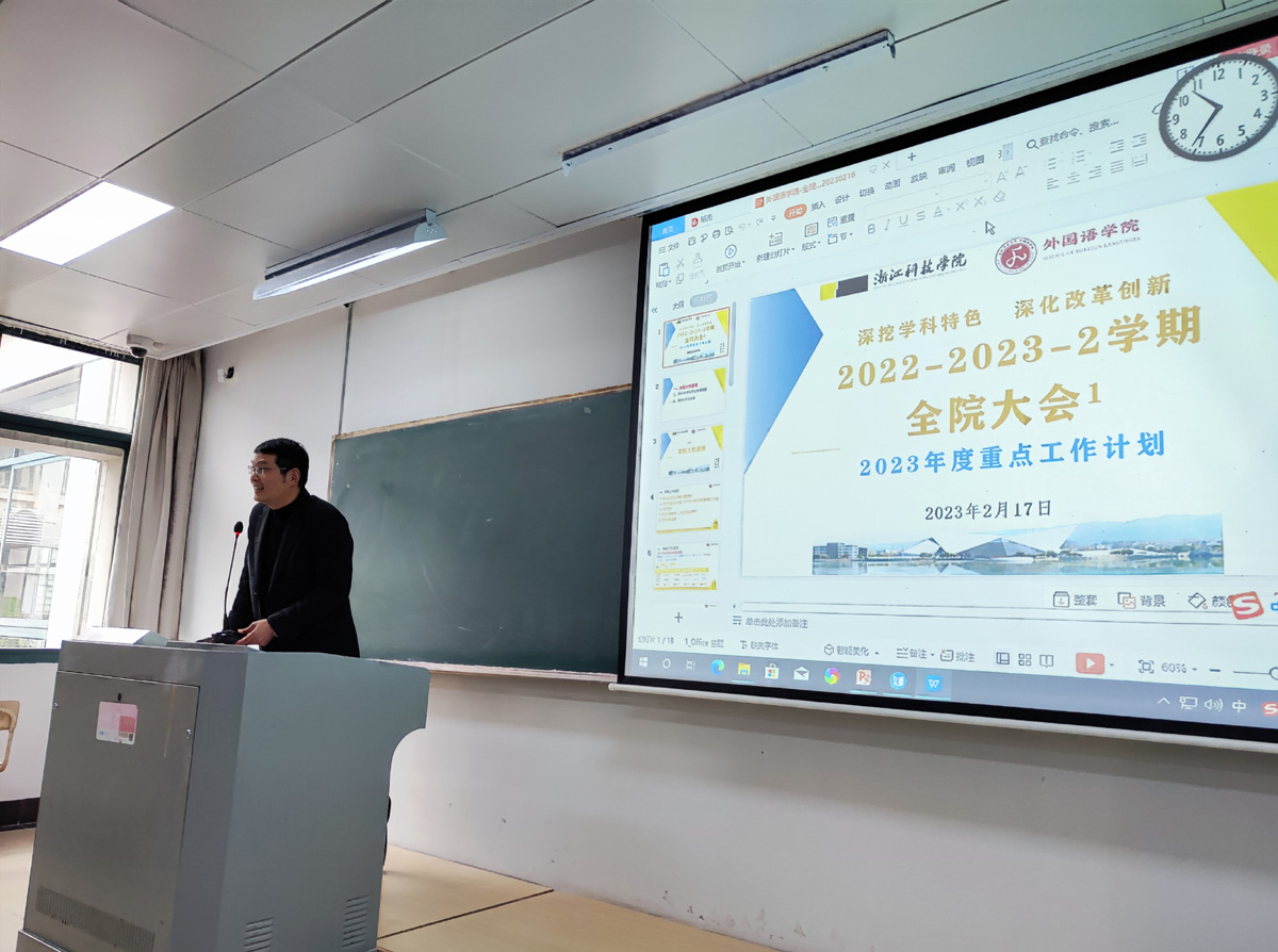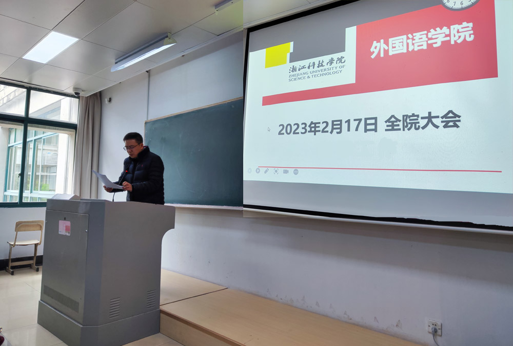 以会促行,凝心聚力,共谋发展。2月17日上午,外国语学院在A2-215教室召开了新学期第一次全院大会,部署新学期各项工作,同时进行了今年第一次全院政治理论集中学习。会议由院长樊燕龙主持,外国语学院全体教职员工参加会议。