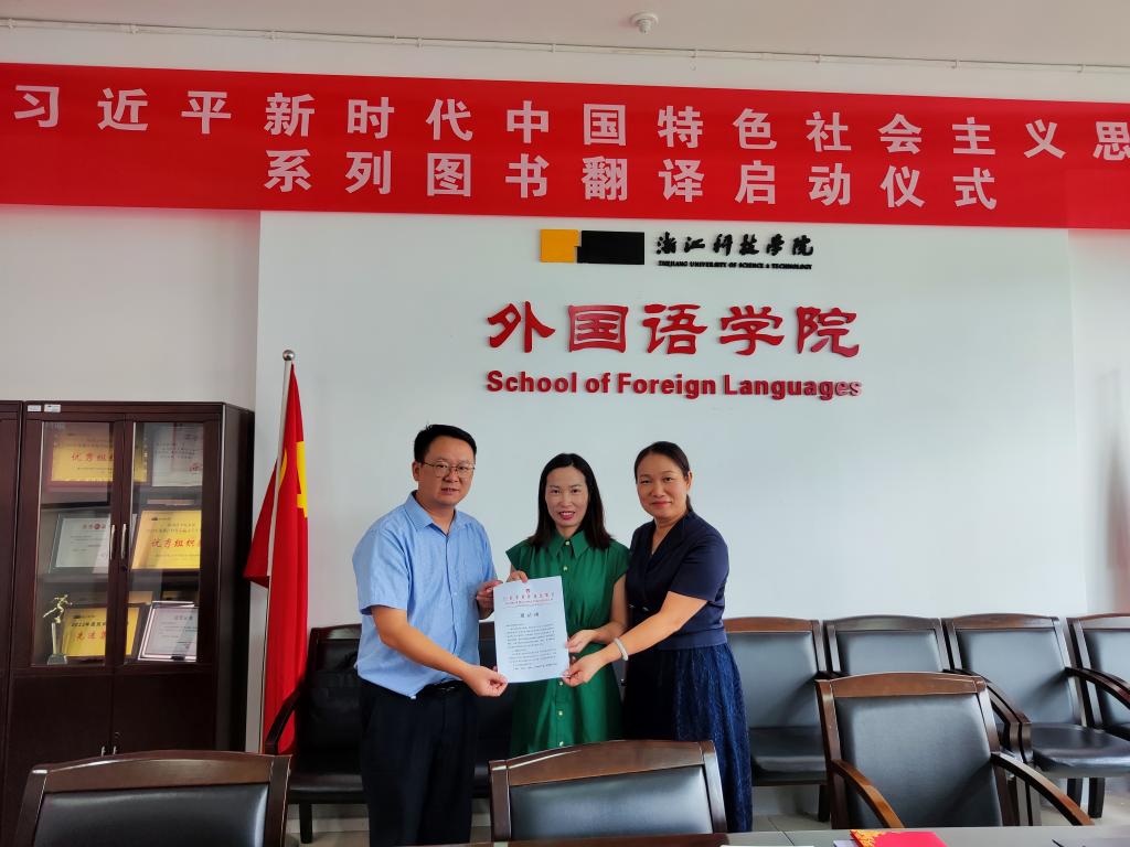 江苏求真译林出版有限公司是国内第三家获得对外专项出版权的企业,由凤凰出版传媒集团旗下译林出版社与北京求是园文化传播有限公司联合成立,专门从事出版“走出去”工作,致力于中国图书的海外传播。外国语学院联合中德学院成立项目组,为江苏求真译林出版社翻译出版《习近平新时代中国特色社会主义思想基本问题》、《奋斗百年——大党为什么能》等共7本书,涉及英语、法语和德语等多个语种。