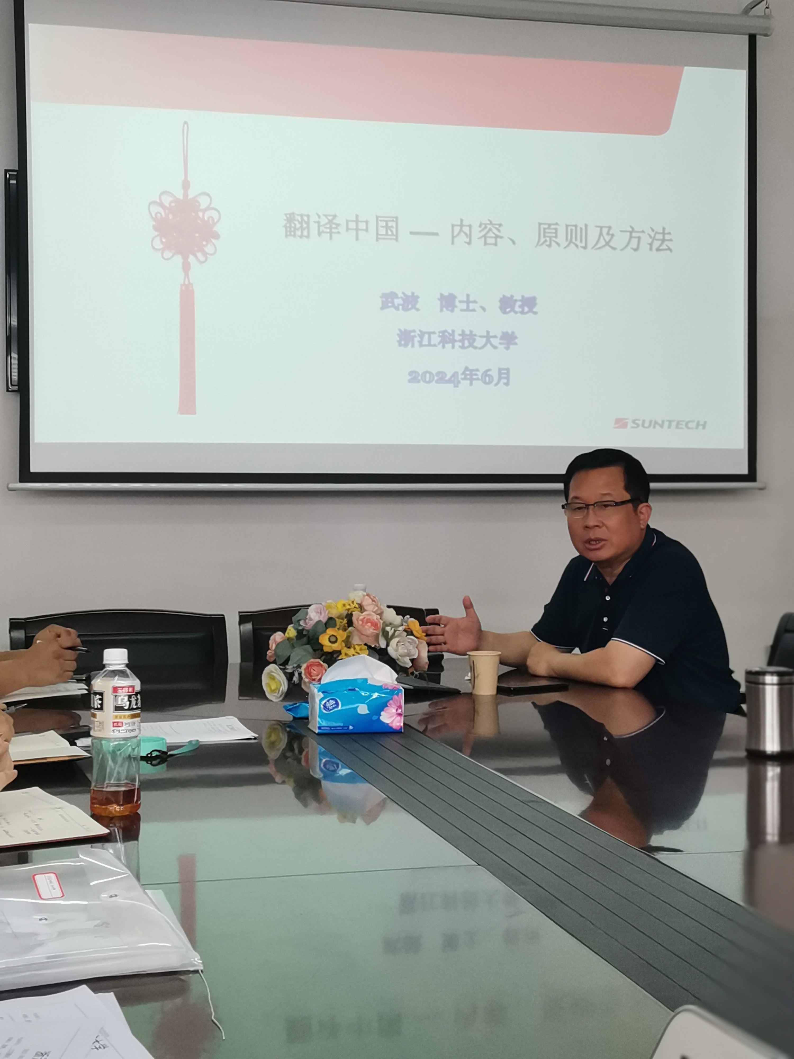 2024年6月13日,外交学院武波教授应邀来我院做题为“翻译中国——内容、原则及方法”的学术讲座,我院翻译研究所的老师以及近五年引进的博士参加了学术讲座,讲座由林宗豪博士主持。
