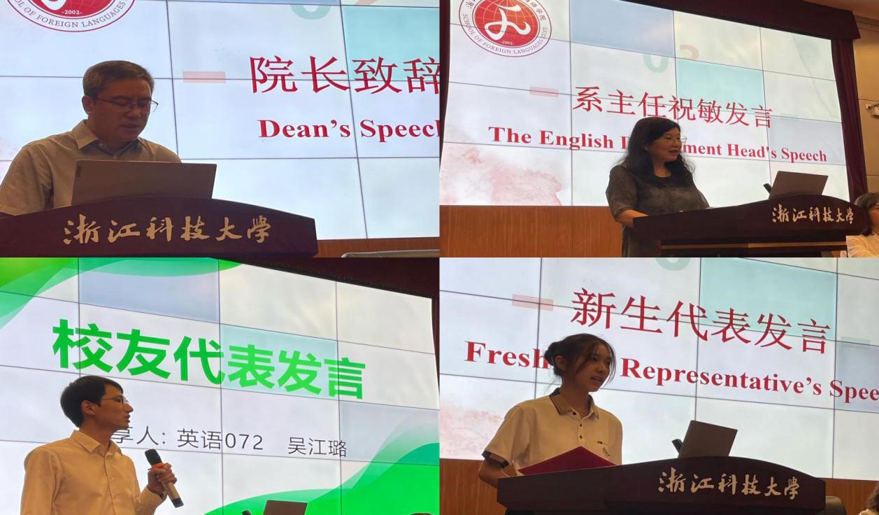 在系主任致辞中,祝敏老师回忆了往昔的大学生活,回答了同学们关于大学生活究竟是怎么样的疑惑,她说:“It all depends on yourself.”她鼓励同学们创造属于自己的大学生活,不被过去束缚,学习刻苦脚踏实地,多样化、多元化发展自我。