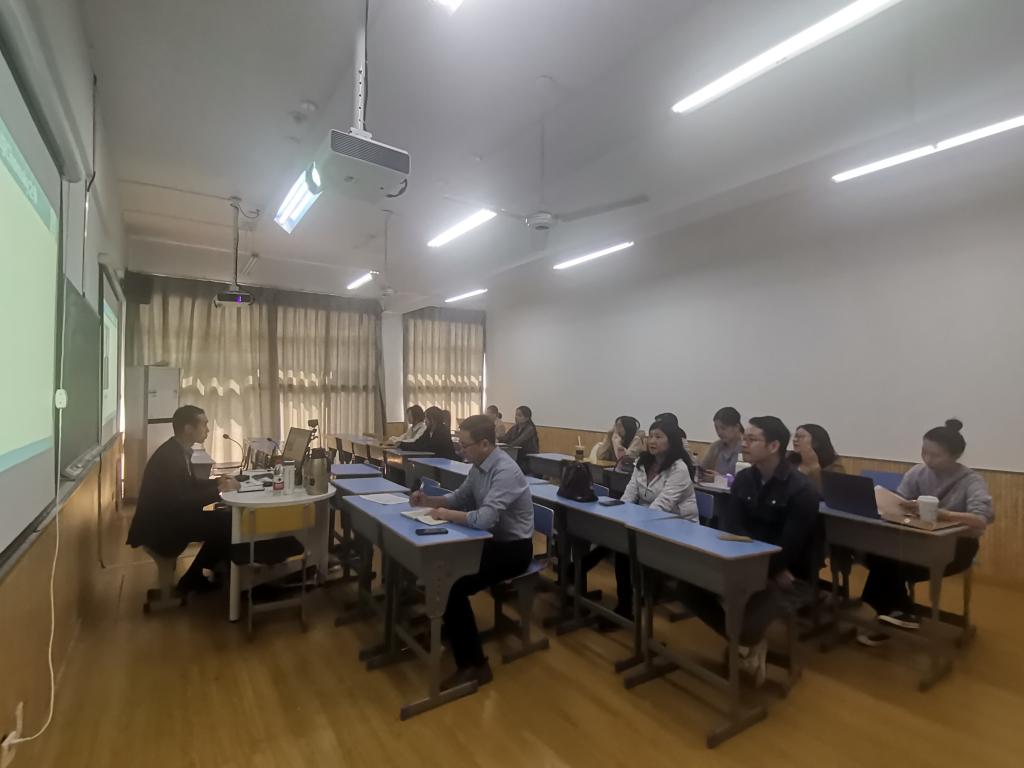 2024年10月24日,杭州师范大学杨大然教授应邀来我院做题为“人类语言的基础特征和生物属性”的学术讲座,我院应用语言学研究所的老师以及部分英语专业的学生参加了学术讲座,讲座由院长樊燕龙主持。