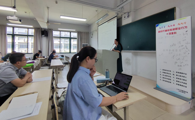 单书记首先从何谓“师德师风”入手,选取了近年来我国高校违反政治纪律、违反教育教学、违反生活纪律、侵害学生权益、违反学术诚信等多个方面的典型案例,给在场教职工进行了深刻的警示教育;接着,他带领大家重温学习了“新时代高校教师职业行为十项准则”,并重点阐述了我校关于师德师风建设规定的相关内容。单书记强调,师德师风是教育事业的根基,直接影响人才培养质量、教育发展进程与国家未来竞争力。作为教师职业道德的核心体现,师德师风建设既是落实立德树人根本任务的必然要求,也是深化教师队伍改革、回应社会关切的战略举措。他语重心长地告诫大家,要珍惜当下,弘扬践行教育家精神,努力铸就高尚师德师风。