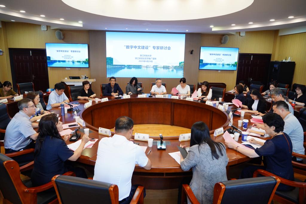 2025年6月24日下午,由浙江省教材委员会(浙江省语言文字工作委员会)办公室主办、浙江省语言文字推广基地(浙江科技大学)承办的“数字中文建设”专家研讨会在浙江科技大学小和山校区召开。