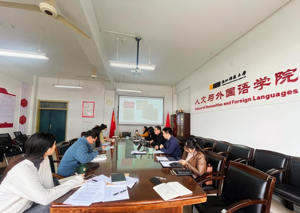 10月28日上午,人文与外国语学院党委在闻理园A3-306召开2025年第9次理论学习中心组(扩大)学习会,专题学习《习近平谈治国理政(第五卷)》、党的二十届四中全会精神。学院党委副书记王铁军主持会议,学院党委理论学习中心组全体成员、各师生党支部书记参加学习,学院院长樊燕龙、党委书记邵莉敏和副书记王铁军作领学发言。