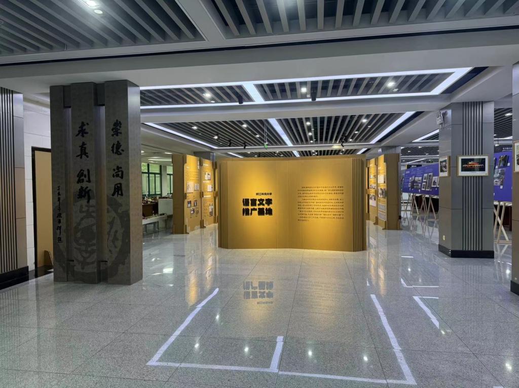 基地在校图书馆东楼展出“浙江科技大学语言文字推广品牌活动和系列成果”,让语言文字与人和环境共生,与校园产生深刻互动。