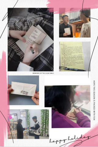 在“以信寄情”活动中,每一位给身边人送去温暖信件的同学是属于身边人生活里的一束光,从某种意义上来说也是一名“雷锋”。有位收到室友信件的同学说道:“我很感动,虽然是同一个寝室的同学,但是我们从来没有给对方写信的经历,这是一次属于我们特殊的回忆,人生的珍贵瞬间,信的内容不重要,纸短情长,但是里面的情意,让人暖心。”