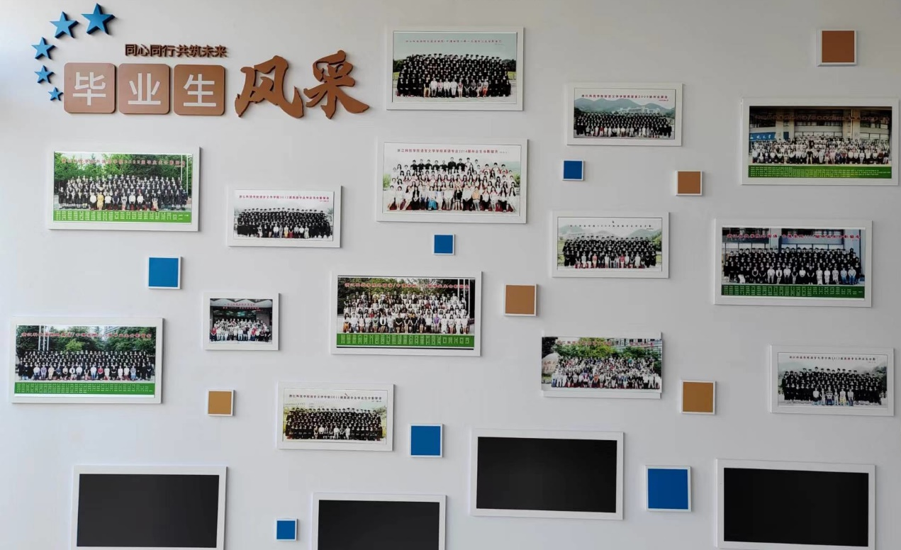 6月,学院在三楼“外国语学院”形象墙左侧开辟了“院庆主题墙”,设置“毕业生风采”专栏,以“同心同行,共筑未来”为主题,精心收集了各届学生的集体毕业照上墙。“院庆主题墙”的设计寄托了学院对所有学子的深切祝福与思念,旨在与外国语学院二十年来的毕业生一起留住美好时光,拥抱璀璨未来。当年一个个身着毕业盛装的青春学子,已是当前各行各业的栋梁之材,在回到学院之际,可以充分体会“回家”的温暖感觉,寻找自己和师长的身影,在主题墙前“打卡”留念。