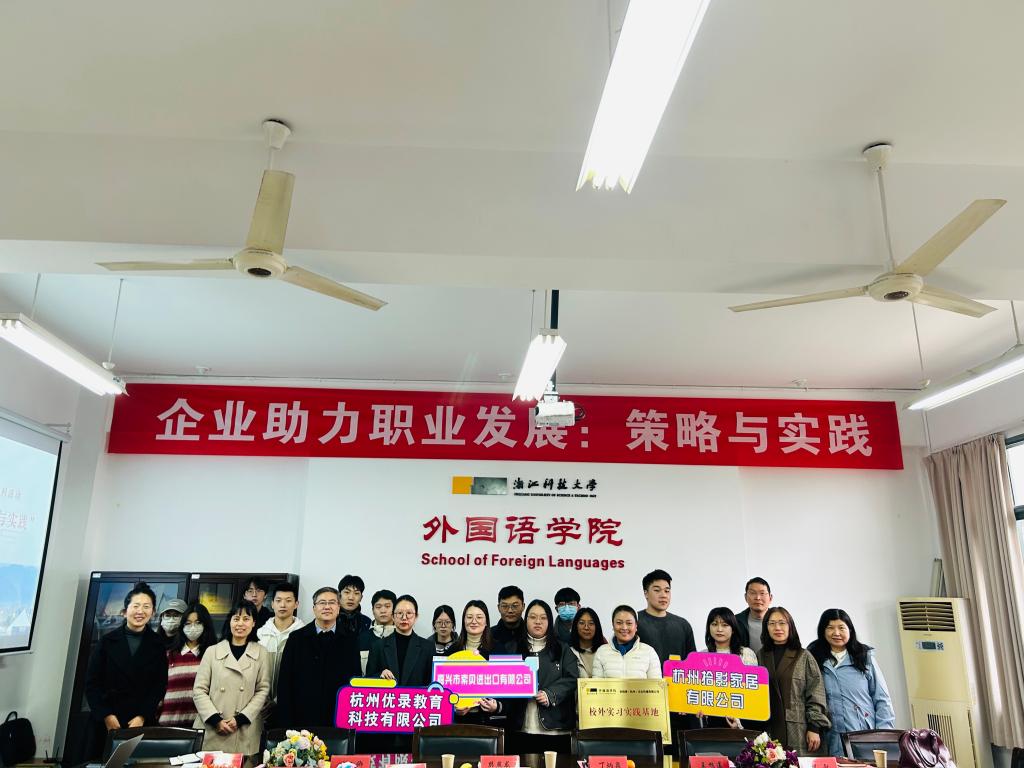 12月5日中午,我院邀请杭州优录教育科技有限公司、嘉兴市索贝进出口有限公司、宁波豪雅进出口集团有限公司、杭州拾影家居有限公司等四家公司举办了“企业助力职业发展:策略与实践”为主题的座谈会。院长樊燕龙、党委书记丁炳泉、副院长王旭莲、系主任祝敏、辅导员王美洁以及各年级学生代表出席,会议由学院党委副书记兼副院长方小卿主持。此次座谈会旨在加强学院与企业的合作,共同探讨如何更好地为学生的职业发展提供支持和帮助。