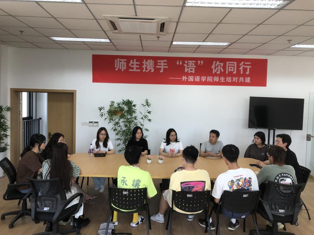 6月23日,“师生携手 语你同行”外国语学院师生结对共建活动在安吉校区正式启动。学院号召党员教师发挥先锋模范作用,带动和影响全体教师,每位教师结对5-10名学生,为每一名学生配备健康成长指导者和引路人,实现专业学生全覆盖。