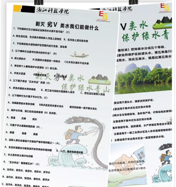 浙江省是著名的水乡,水是生命的源泉、生产的要素、生态的基本,因此以治污水、防洪水、排涝水、保供水、抓节水为突破口的“五水共治”工程是一举多得的举措。既扩展了投资又促进了转型,既优化了环境更惠利了民生。为响应浙江省开展的“五水共治”工程项目,我院组织开展了“剿灭劣Ⅴ类水,助力生态文明”的系列环保活动。此次系列活动在小和山和安吉校区同时开展,相互呼应。