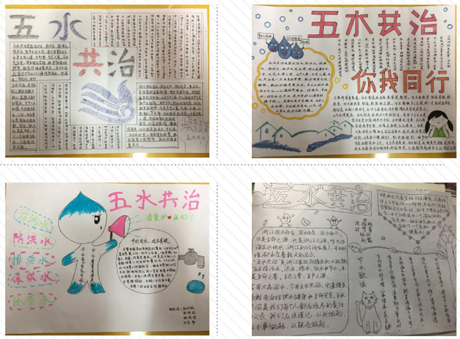 绘制手抄报的活动让同学们发挥自己的想象,为五水共治绘制宣传手抄报。不仅考验了同学们的绘画技能,也考验着同学们对五水共治政策的了解程度。最终同学们合作绘制出了十分美丽的手抄报。