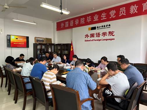 2022年8月31日,外国语学院理论学习中心组举行新学期专题学习会,集中学习《习近平谈治国理政》第四卷。外国语学院党总支书记丁炳泉主持会议并讲话。院领导班子、支部书记、各系部负责人参加会议并作主题和交流发言。