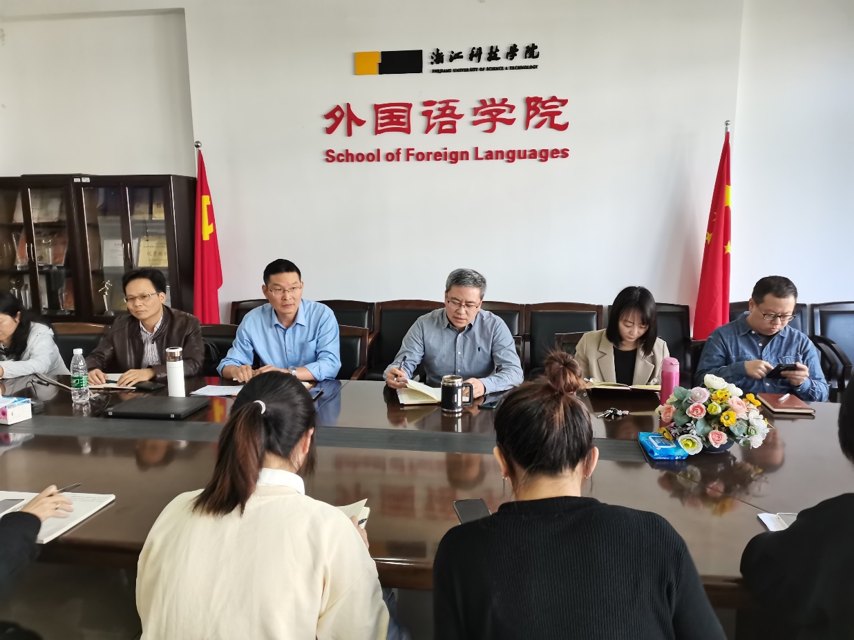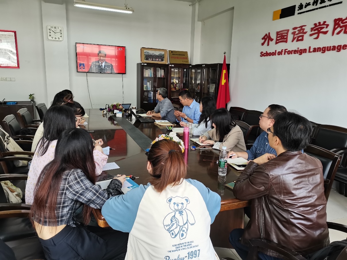 在集中收看党的二十大开幕会直播后,学院还第一时间召开座谈会,组织师生党员开展讨论,分享心得。外国语学院第四党支部书记石教旺老师表示,观看党的二十大开幕会盛况,聆听习近平总书记的报告,是一次激励和学习,也为今后教育教学工作增添动力、明确方向。