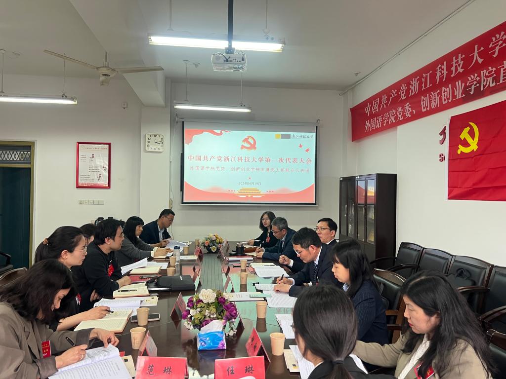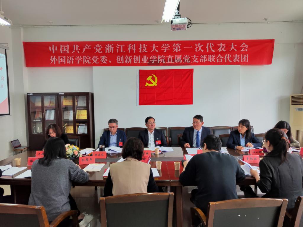 4月19日上午,中国共产党浙江科技大学第一次代表大会隆重开幕,这次会议是在学校立足成功更名新方位、全面开启新征程的关键节点上召开的一次十分重要的大会。4月19日下午,外国语学院党委、创新创业学院直属党支部联合代表团在我院会议室进行分组讨论,审议和讨论校党代会“两委”工作报告、大会选举办法(草案)和党费收缴使用管理情况报告等。会议由代表团团长丁炳泉主持,李其朋副校长,外国语学院和创新创业学院的全体正式代表和列席代表参加。