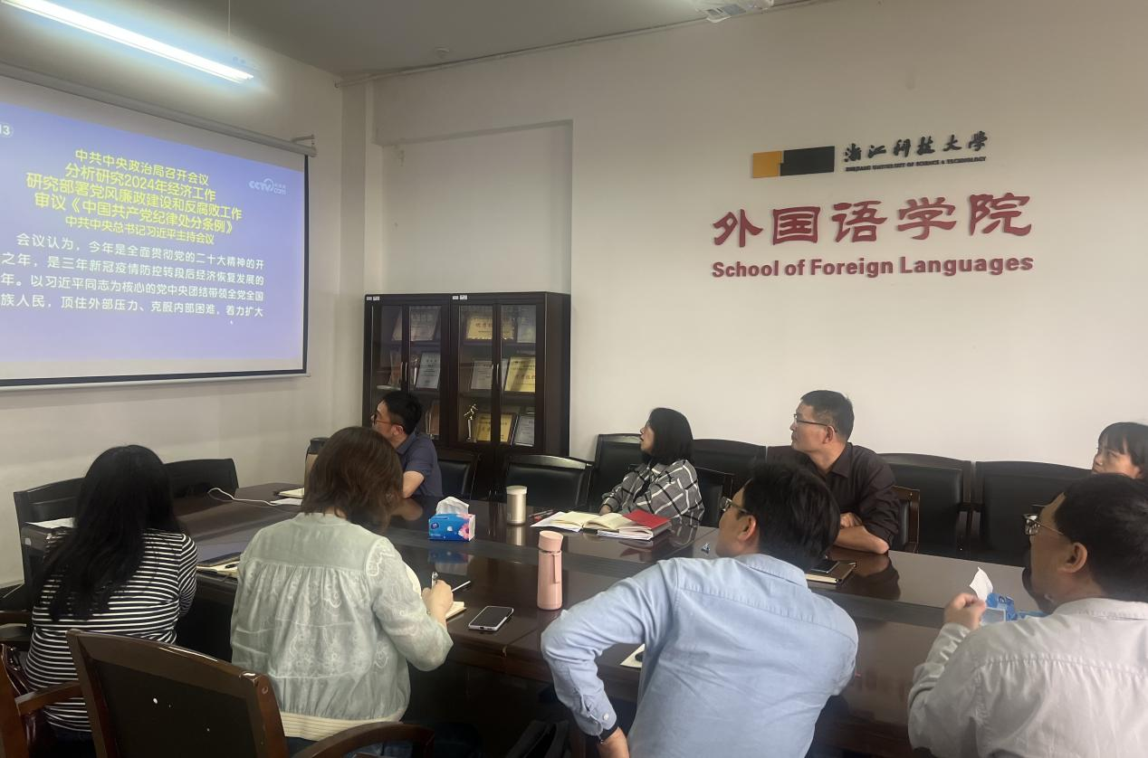 会上,全体中心组成员集体观看视频新闻,认真学习中共中央政治局关于研究部署党风廉政建设和反腐败工作以及审议《中国共产党纪律处分条例》的会议精神,学习领会习近平总书记关于新时代新征程推进党的建设和自我革命的新部署新要求,深刻认识加强党的纪律建设的重要性和紧迫性。会议指出,开展党纪学习教育,是以习近平同志为核心的党中央加强党的纪律建设、推动全面从严治党向纵深发展的重要举措,也是我校推进高质量发展高水平建设的重要保障。学院要把开展党纪学习教育作为今年党建工作的一项重大政治任务,深刻领悟“两个确立”的决定性意义,坚决做到“两个维护”,切实把思想和行动统一到党中央决策部署上来。