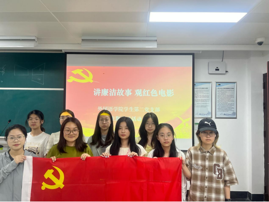 5月23日晚,外国语学院学生第二党支部联合外语协会,举行了一场双语的红色廉洁文化教育主题党日活动。在学生第二党支部书记范琳老师的带领下,学生党员们来到闻理园A1-402,学习“传习红色文化,学习廉洁思想”的精神。活动旨在推动党纪学习教育走深走实,深化党员对红色廉洁文化的认识,提升党性修养,增强用双语“讲好中国故事,传播中国声音”的能力。