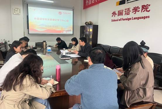 会议还传达学习了2025年全国两会精神。要切实提高政治站位、深化思想认识,将深入学习贯彻全国两会精神特别是习近平总书记系列重要讲话精神作为当前的一项重要政治任务,以全国两会精神为指引,重点加强学科建设,优化课程体系,提升人才培养质量;深化国际交流合作,拓展学生国际视野与跨文化交际能力;增强文化自信,推动中华优秀传统文化传承与传播。切实把学习成效转化为推动学院高质量发展的强大动力。
