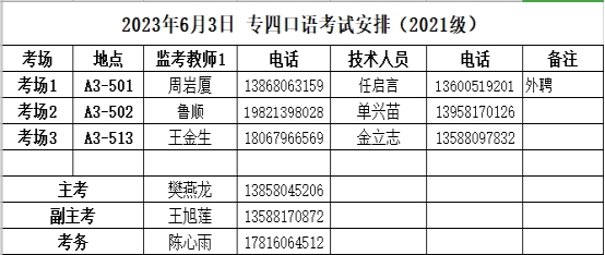 4.6月3日(周六)7:30 专业英语四级口语考试,A3五楼,参加人员:相关监考人员;