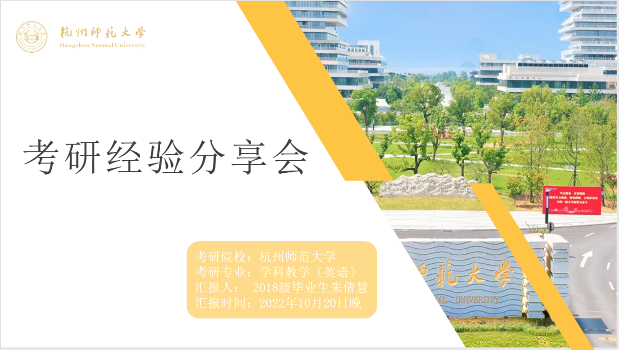 10月20日晚,外国语学院在小和山校区召开了线上考研经验分享交流会,外国语学院副书记方小卿老师出席,优秀研究生学长代表以及2020级意向考研同学参加,会议由辅导员王美洁老师主持。 本次交流会旨在为有考研意向的大三学生提供考研经验辅导。会上,来自杭州师范大学、浙江财经大学、宁波诺丁汉大学、宁波大学、上海财经大学等高校研究生学长纷纷献策:依据不同方向,让大家了解学科英语、翻译、法律(跨专业考研)等研究生方向...
